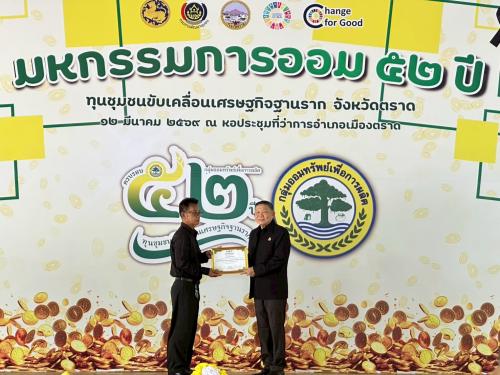 สำนักงานพัฒนาชุมชนจังหวัดตราด จัดงาน “มหกรรมการออม 52 ปี ทุนชุมชนขับเคลื่อนเศรษฐกิจฐานราก จังหวัดตราด” โดยมี นายพิริยะ ฉันทดิลก ผู้ว่าราชการจังหวัดตราด เป็นประธานในพิธีเปิดงาน และ นายปัณณธร ล่ามแขก พัฒนาการจังหวัดตราด กล่าวรายงานวัตถุประสงค์ของการจัดงาน เพื่อส่งเสริมและเผยแพร่การดำเนินงานของกลุ่มออมทรัพย์เพื่อการผลิต รวมทั้งสร้างการรับรู้ถึงความสำคัญของการออมและการมีวินัยทางการเงินของประชาชน