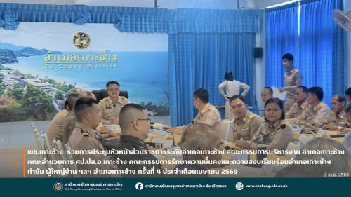 🏝️🐘 สพอ.เกาะช้าง ร่วมประชุมหัวหน้าส่วนราชการระดับอำเภอเกาะช้าง คณะกรรมการบริหารงาน คณะอำนวยการ ศป.ปส.อ.เกาะช้าง คณะกรรมการรักษาความมั่นคงและความสงบเรียบร้อย กำนัน ผู้ใหญ่บ้าน ฯลฯ อำเภอเกาะช้าง ครั้งที่ 4 ประจำเดือนเมษายน 2569